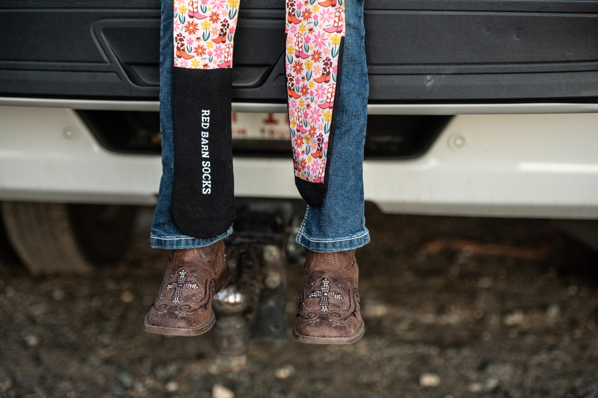Our bestselling Boots n' Blooms are back by popular demand! Featuring a playful mix of cowgirl boots and colorful wildflowers, these socks are the perfect blend of Western charm and bold, cheerful style. Whether you're in the saddle, out on the town, or lounging at home, they'll keep your feet cozy while turning heads. A fan favorite that sells out fast!