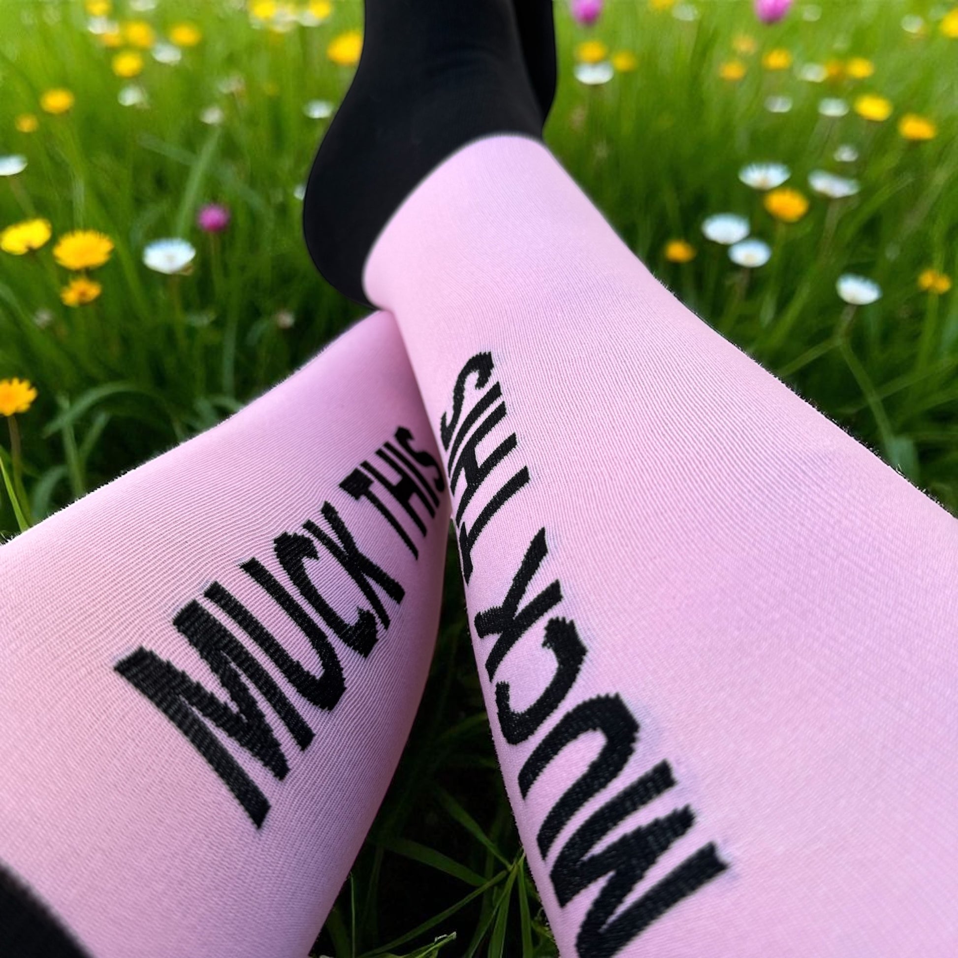 Barn chores just got a whole light brighter (and sassier) with our MUCK THIS sock, a collaboration with Unsustainable Apparel. Designed for riders and equestrian lifestyle lovers who aren't afraid to get a little muddy, these socks combine bold style with unbeatable comfort.